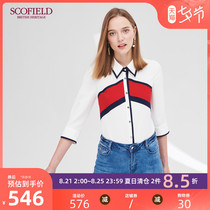 SCOFIELD women's three-quarter sleeves hit color square collar commuter chiffon blouse new SFBA92509Q