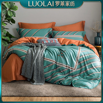 Luolai home textile bedding all cotton satin bed sheet quilt cover simple double four piece set Q