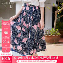Tricolor 2020 summer new pure cotton high waist geometric print A-line skirt big swing skirt medium length skirt female