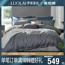 Luolai Home Textiles Simple Cotton Duvet Cover Sheet Bed European Style Four-piece Set Satin Pure Cotton 1.8m Bed Q