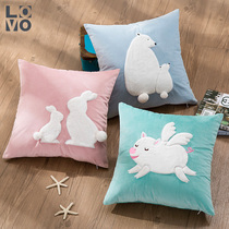 LOVO家纺靠垫套抱枕腰靠不含芯45x45cm可爱卡通贴布绣系列靠垫套