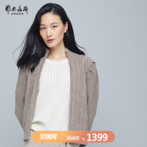 鄂尔多斯 通勤简约半高领绞花女纯羊绒针织开衫罗纹