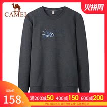 骆驼牌男装春秋新款刺绣印花圆领男士卫衣休闲套头上衣百搭打底衫